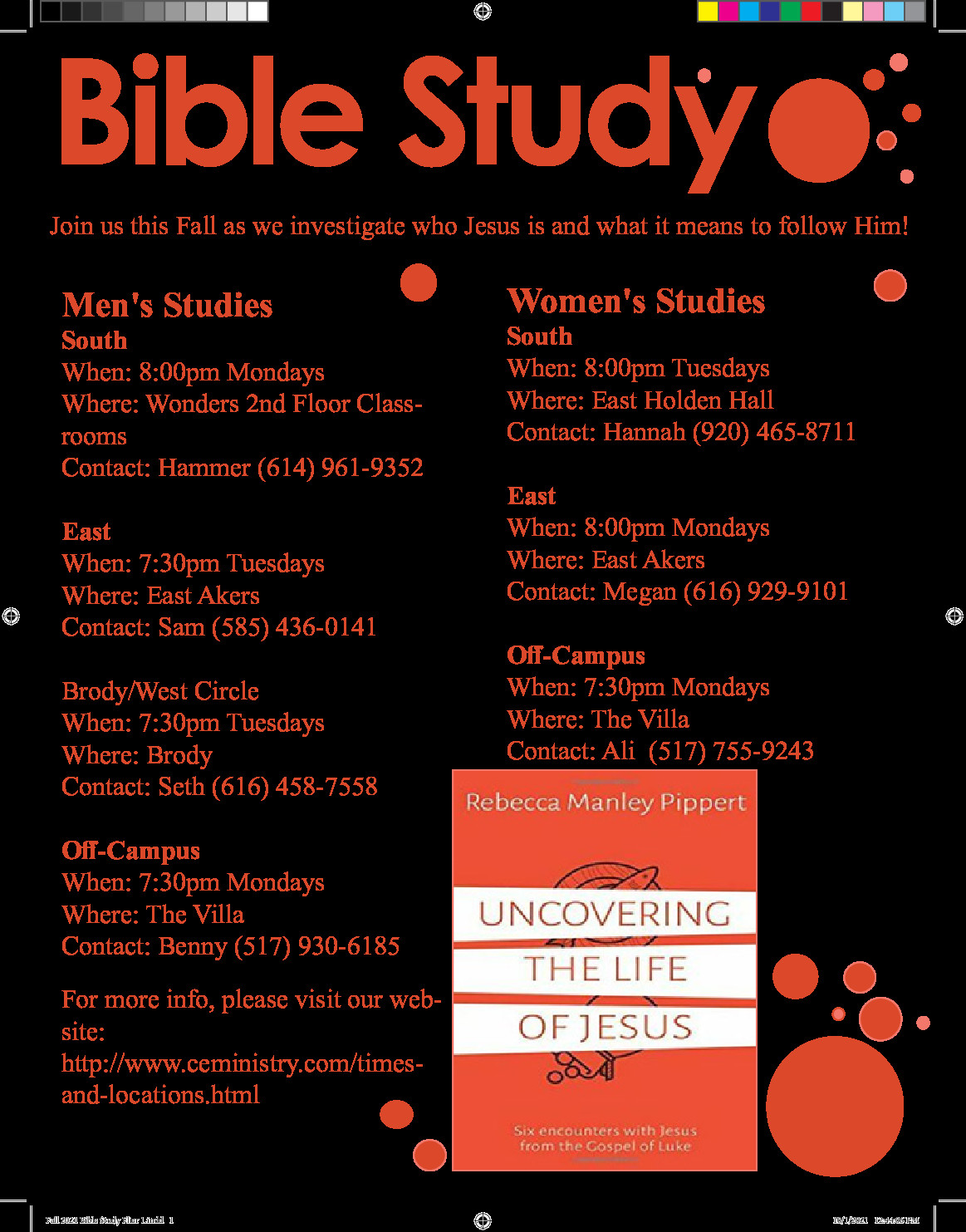 We will be holding Bible studies around East Lansing this Fall! To start off the year, we will be reading Uncovering the Life of Jesus, a 6-week investigative study through the Gospel of Luke on who Jesus is. Following that, we will be studying the spiritual disciplines and what it means to follow Christ. We look forward to you joining us!