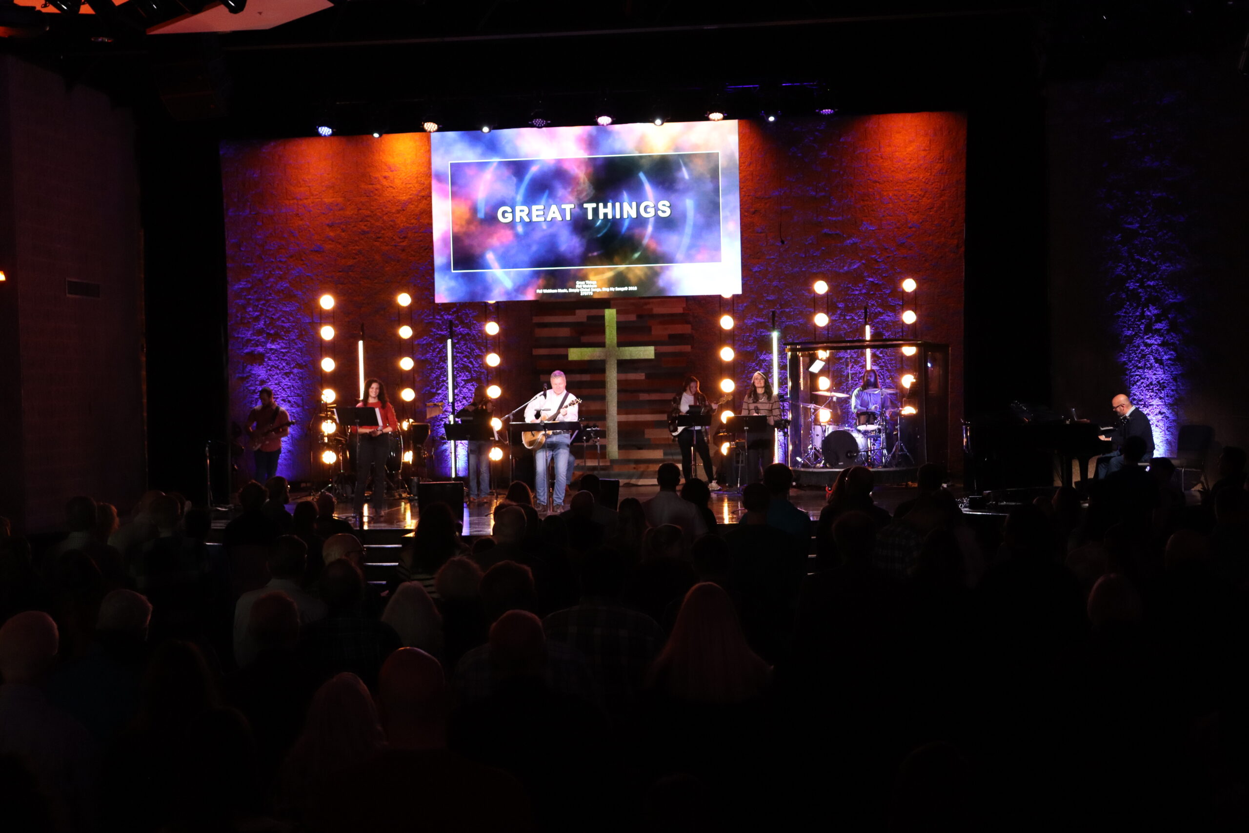 Service elements in this service are less formal and are programmed to be free-flowing with lower levels of light on the congregation. The music is predominantly guitar-driven and contemporary. The creative service music is led by the worship team putting modern instrumentation to worship songs and traditional hymns.